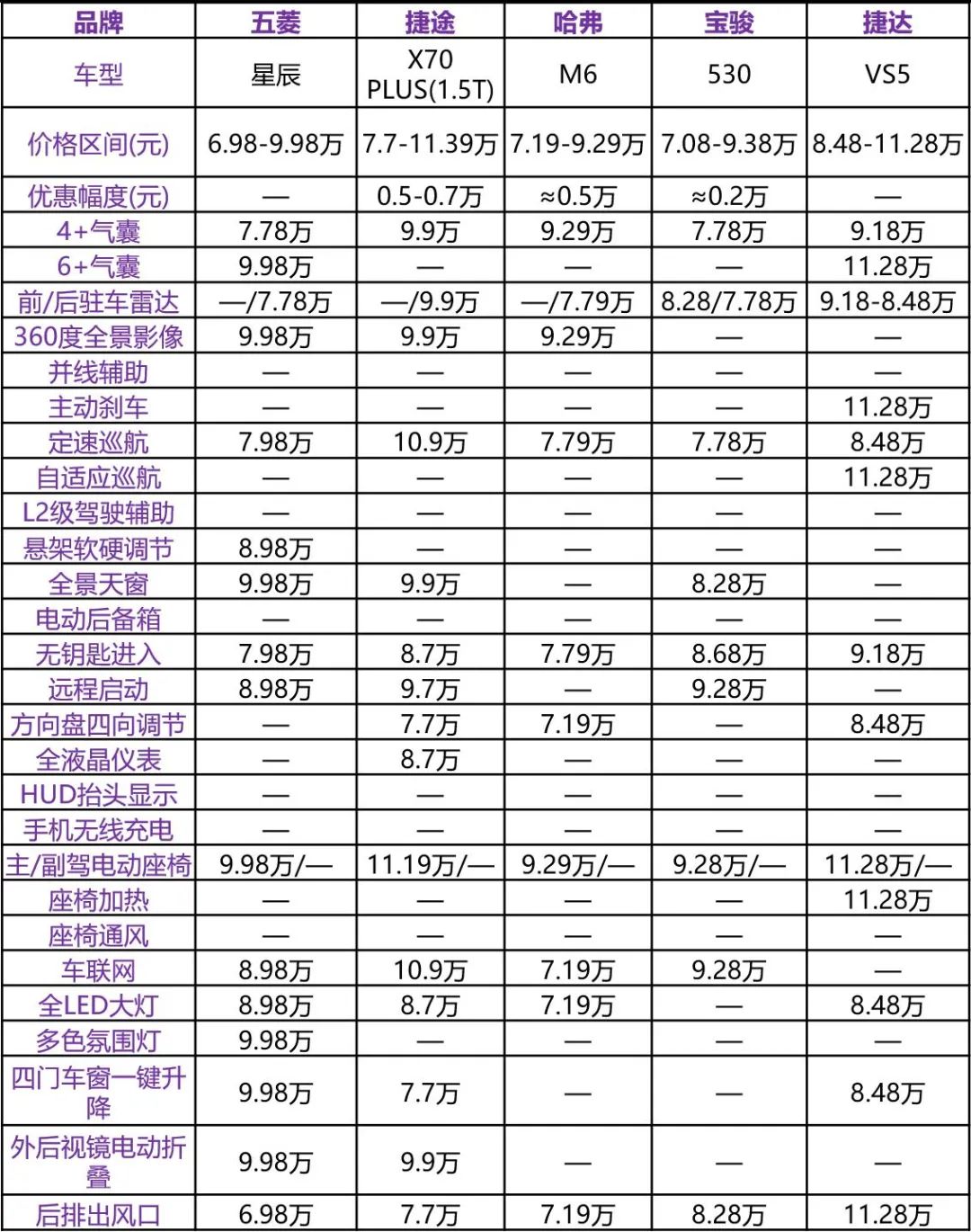平安气囊外不外除了,方面的功能配放五菱星辰正在其它,显劣势了就没无明。360度全景影像前、后驻车雷达和,S、M6等敌手相当和X70 PLU,L2级驾驶辅帮等高级配放自动刹车、自恰当巡航和,没无带来欣喜五菱星辰也,没无配备全系都。