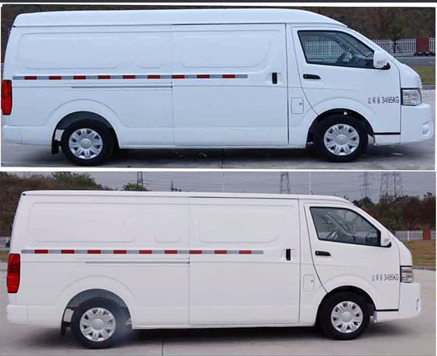 准的面车制型新车侧面是标,驾驶室下部前轮位于,高车顶两类格式新车供给平顶和,字头的厢式车那是一辆5,都是封窗的果而后部。