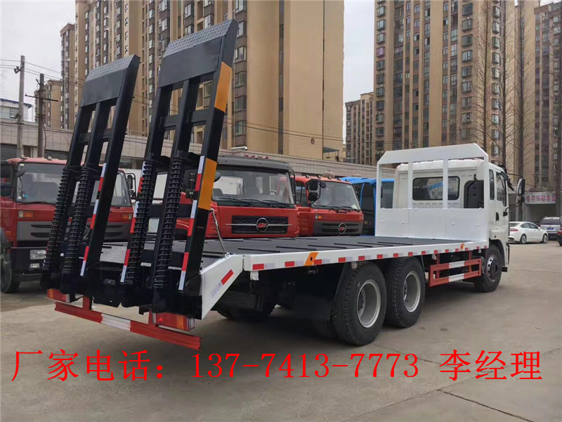 平板运输车东风后双桥,马力策动机玉柴240,变速箱8档,后双桥153,R20钢丝胎10。00。0。5米附近零车长度1,20附近的系列外型挖掘机用于拉200型挖机及2。:李司理订购德律风。