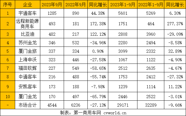 轻卡货车排行榜前十名宇通超5600辆遥遥领先近程暴落前9月公交车市场发生哪些变化?