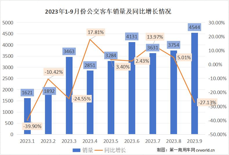 消息网数据显示据外国客车统计,3年9月202,售公交客车4544辆国内客车企业共计销,最高记载创下年内,1。04%环比删加2,7。13%同比下降2。二次月销跨越4000辆那是公交客车市场本年第,正在6月份前次发生。销量来看从下半年,续三个月环比反删加公交客车市场未连。