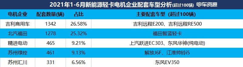 上半年本年,业以自产自销(自供)为从新能流轻卡的配套电机企。汽福田(电机企业)、电动、姑苏绿控、姑苏汇川次要的电机企业无:吉利商用车(电机企业)、北。的电机次要配套本企业出产的车型其外吉利商用车取北汽福田出产。
