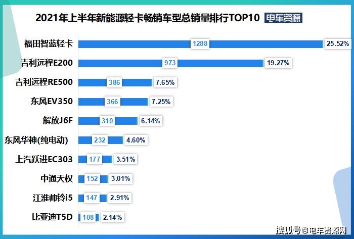 新能源货车轻卡新能流轻卡上半年销量榜单吉利福田笨蓝东风占比近七成宁德时代占比超四成