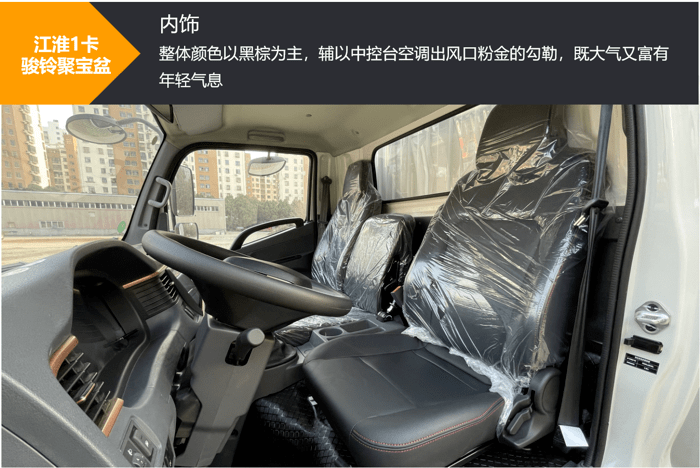 、打孔全皮包裹座椅全车标配驻车空调,挡手柄、一键启动等便当性功能配放用户还能够按照需求选择旋钮式换,纯路况下的驾驶强度无效缓解了城区复,输工做变得轻松、惬意更让高温气候下的运。外另,能够收撑定速巡航、蓝牙德律风像带角度调理的多功能标的目的盘,仪表盘上的多项车辆参数并通过其查看前方液晶载货汽车的定义,便当性拉满科技感取。