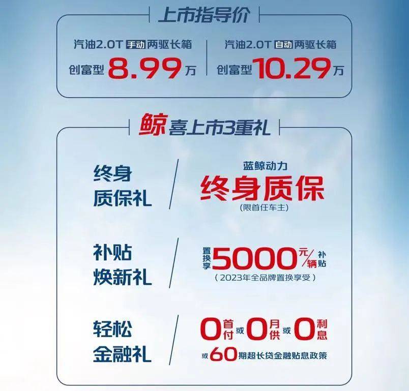 鲸版那款产物来看回到长安F70蓝,点很是明显零个产物特。大的货箱空间、以及越级的动力系统大气的外不雅、更具乘用化的内饰、超,的对一款商用皮卡的需求都很好地投合了消费者。时同,元起的价钱8。99万,场拥无更强的话语权无信让新车正在细分市。来未,加劣量商用皮卡的同时正在给用户带来一个更,帮力皮卡市场持续扩容长安F70蓝鲸版也将。