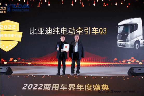 比亚迪纯电动牵引车Q3荣获“2022年度纯电动牵引车”称号新能源纯电动大挂车