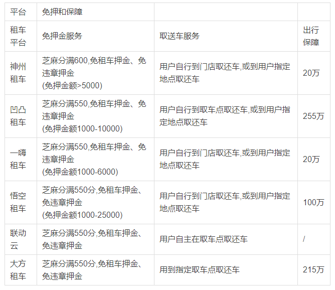 额几个平台对好比下别的免押和金,麻信用免押办事各家都供给了芝,额都大同小同免押和金;但