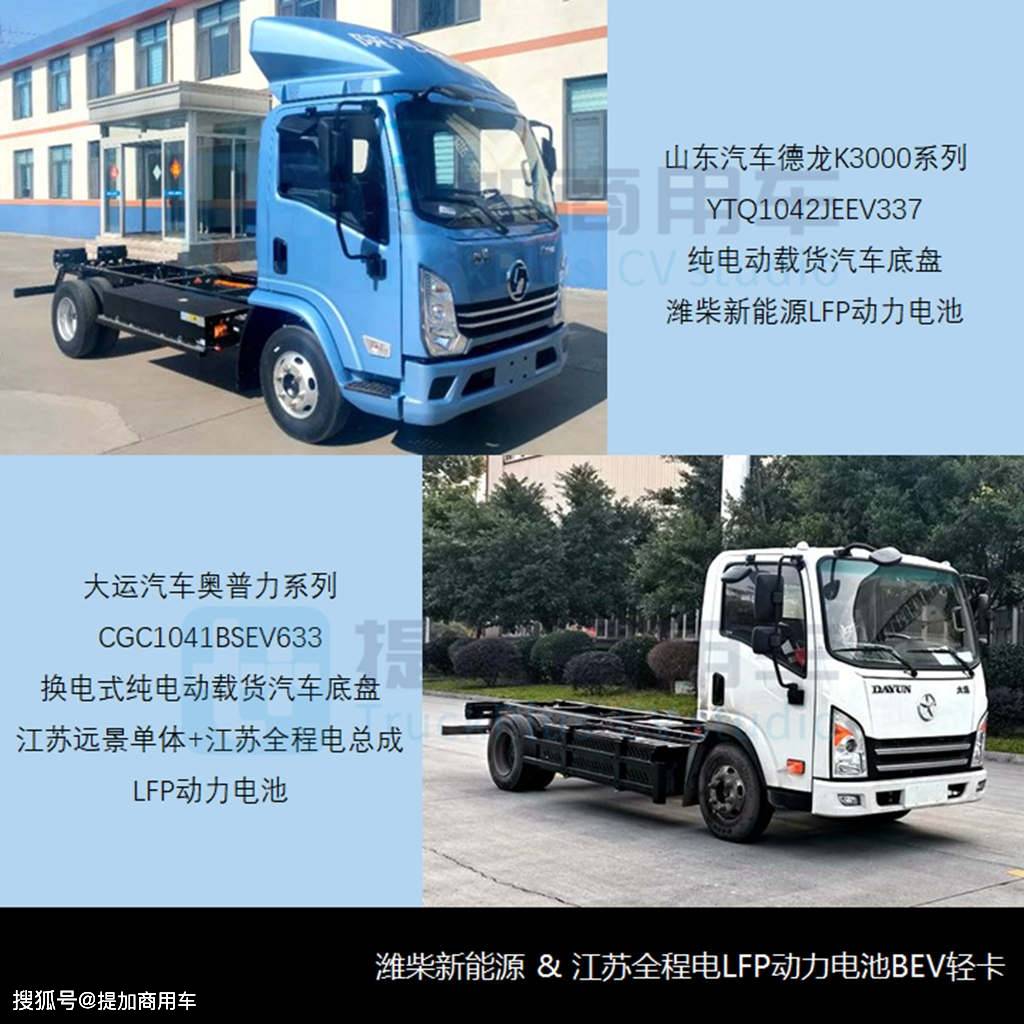 EV337纯电动载货汽车底盘山东汽车YTQ1042JE,列驾驶室农用车小货车、准乘2/3人采用德龙K3000系,LFP动力电池搭载潍柴新能流,。3米轴距3,簧吊挂可选无五组板,20kW电驱桥婚配陕西汉德1,00km/h最高车速1。EV337纯电动厢式运输车同期申报该底盘取山汽YTQ5042YJE,长5。99米构成零车后全,。18米货箱长4,5/1200kg额定载量量126。
