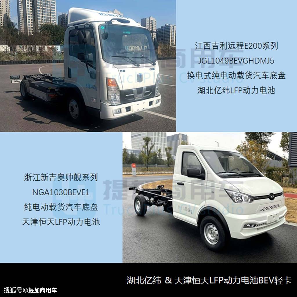 =3150kg合计两款轻卡类GVW Min,江新吉奥帅舰系列即上文引见的浙,30BEVE2纯电动载货汽车底盘列出另一款申报通知的NGA10,33度LFP动力电池搭载姑苏气量45。,BEV2纯电动载货汽车同期申报该底盘取新吉奥NGA1030,62吨、额定载量量1。4吨构成零车后的零备量量1。。