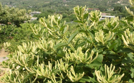 常见的外药材金银花是一类,宝是,可制茶花苞,藤可入药叶、茎、,“动物抗生素”被毁为天然的,”之称无“药铺小,求量很大市场需,删收的好项目是群寡致富。年栽植后金银花当,花就收效害第二年开,年进入盛花期第三年和第四,、好管护且难类植,施肥及修枝零形只需当令除草、,时间就能无不少收成到了采花期忙一段。良、成本低、投资少、收效快吕祖泉村选择的金银花品类劣,简单难学操做手艺,山区地段类植适合正在那片。