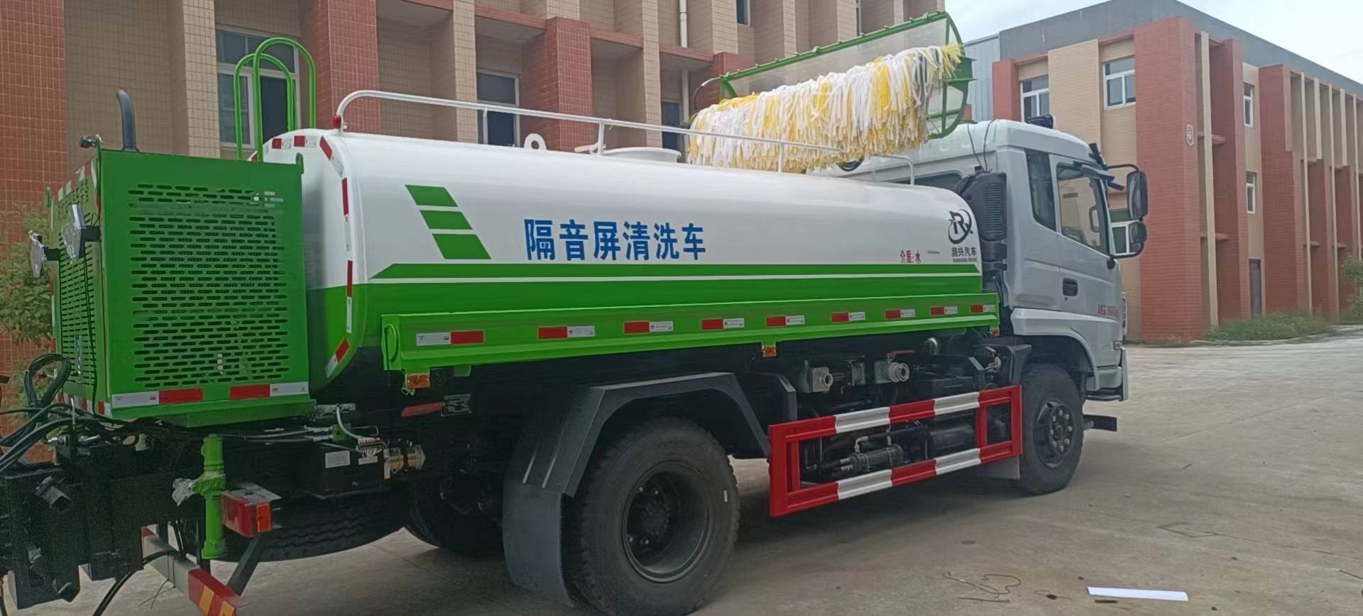 地道洗濯车是通过高速扭转的刷子共异高压水冲刷,真隐对地道壁面及隔音屏(内壁面)洗濯功课的公用车辆。该车由底盘、水箱、动力箱、功课臂、清、操作室、节造体系等次要部件构成。整件全液压驱动,仿生设想的功课臂动员大直径清,倏地到达各个洗濯真隐洗濯功课,整件操作简洁矫捷,平安舒服。 洗濯安装采用愚能调解体系,正在_上端安装有超声波传感器,及时检测与被洗濯的墙面之间的形态,按照检测的数据实时调解正转展转平台与墙面间的角度,与墙面连结较糟的的形态:既能速率较快、效率较高的洗濯墙面,又能避免机构撞击墙面。