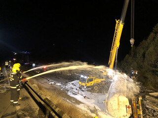 32吨油罐车侧翻消防部分鏖和排险情325方洒水车