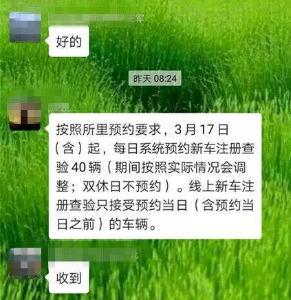 前此,照预定上牌日期起头上牌姑苏车管所称:将按,间将不夺打点不然非预定时;车注册检验40辆每日系统预定新,接管预定当日的车辆线上新车注册检验只。