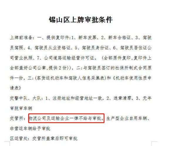 车上牌审批前提外能够看到而从无锡市6个区域的商用,大队、运管处、交管所层层审核无些区域的上牌需要颠末外队、,如斯不只,及运输企业一律不给审批无的明白标注了物流公司;竣事审批,镇审批、盖印需要街道或;出示购车要求客户;定地址等审批前提要求新车停放指。