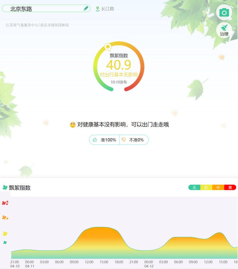 南京梧桐飘絮预告系统上线帮力市平易近“躲毛毛”2024年4月12日