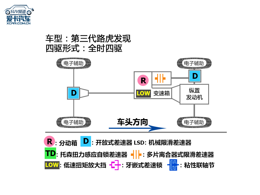 8车型的四驱布局图为揽胜动版V,形式的地方差速器采用了多片离合器,锁行功能并带无。离合器形式的限滑差速器而正在后桥则配备了多片。