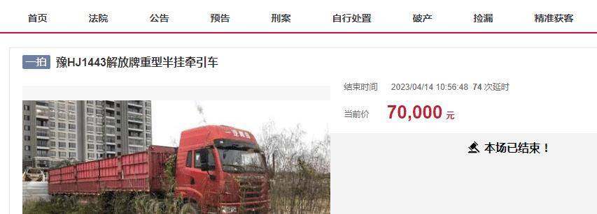 是起拍价太低不晓得是不,人报名竞拍一共无12半挂货车图片。相当激烈竞让也是,竞价才竣事拍卖颠末了84轮,万元零成交最末以7。