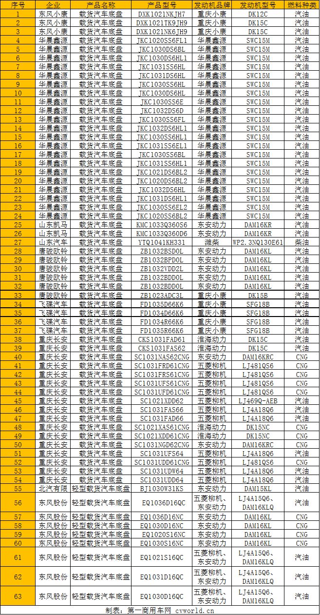 车型来看从具体,货汽车底盘和轻型载货汽车底盘那63款车次要分为2大类:载。息请见下表细致车型信。