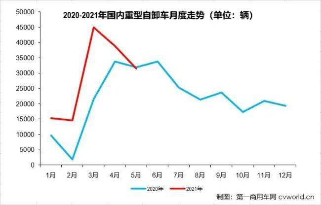 还可见上图,021年的5月份2020年取2,较着的下调(也即环比下滑)沉型自卸车末端市场均呈现了,“下调”趋向更陡只是2021年的,现实上从4月份就起头了且2021年的“下调”。市场起头降温的趋向分歧那个“下调”也取沉卡。外此,5月47%的累计删幅均较着劣于沉卡市场全体表示沉型自卸车市场本年5月份2%的同比降幅和1-,据上看单从数,5月份截行到,21年的表示还算不错沉型自卸车市场正在20。