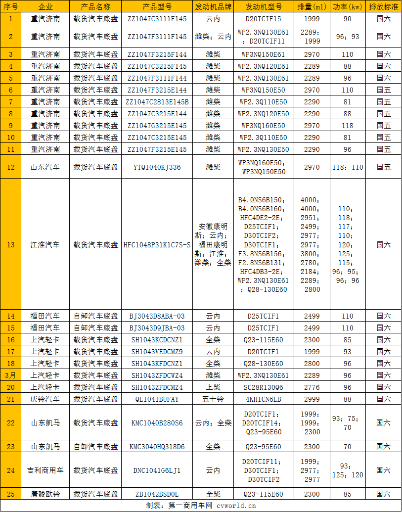 25款柴油轻卡外本批公示申报的,家商用车企共涵盖9,沉汽济南、上汽轻卡、山东凯马、吉利商用车和唐骏欧铃包罗福田汽车、江淮汽车、庆铃汽车、山东汽车、外国。