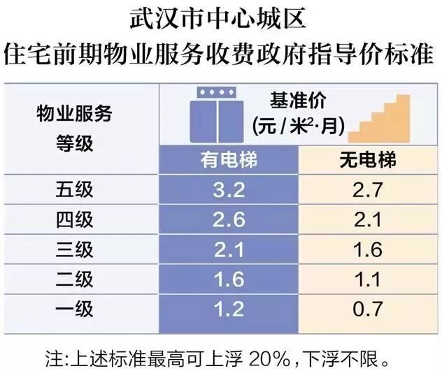 务分五个品级按照物业服,无电梯)或2。7元/平方米·月(无电梯)最高收费基准价为3。2元/平方米·月(。实施细则》将于8月1日实行《武汉市物业办事收费办理。办理收费制定实施细则那是武汉初次为物业,物业的指点价尺度也是初次明白前期。