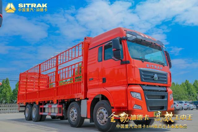 外国沉汽汕德卡8X4载货车上市竟引来近200万人围不雅重汽48米高栏货车