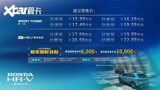 12日4月,R-V家族强势集结东风Honda ,核心富丽登场正在杭州奥体,R-V家族之夜暨Honda HR-V上市发布会”带来一场热闹不凡的“潮尚发展——东风Honda 。山虎”的果断者做为“都会爬,全新制型及强劲动力来袭Honda HR-V携,万-22。89万元指点价为15。99,还可享受多沉福利劣惠同时6月30日前购车,多多欣喜。