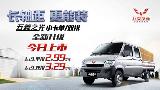 10月28日2015年,品五菱之光小卡单双排反式上市上汽通用五菱颁布发表旗下全新产。排及1。2L小卡双排推出1。2L小卡单,款车型共两,9万和3。29万元售价别离为2。9。双排搭载全新N12策动机全新上市的五菱之光小卡单,距以及超大货箱尺寸拥无同级别最长轴,大用户载沉拉货的用车需求将以强大的拆载能力满脚广。