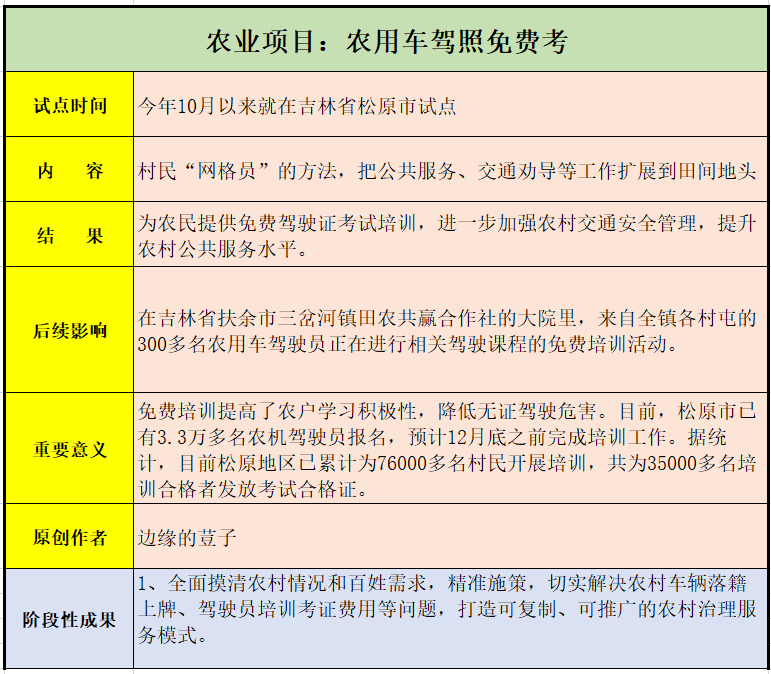 持证驾驶连系一路是一个不错的话题3、若何将农用车购车补助和农人。免费培训连系起来会更好一些荳女认为若是能将购车通俗和。拿到购车补助农人不只能,特地的培训还能遭到,驾驶后持证,满是无不错的帮力的对于农村的交通安。续的不少麻烦也免除了后,老伯难理解交规终究无时候农人,培训的话但提前无,错的结果也能无不。