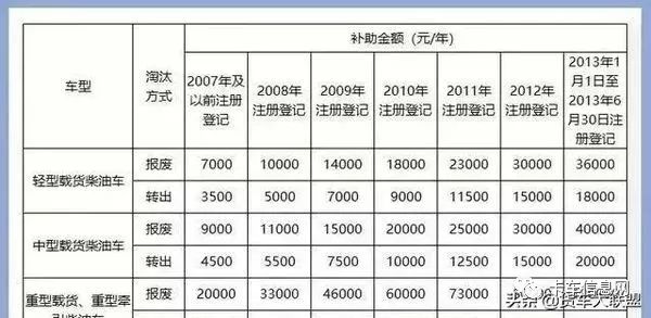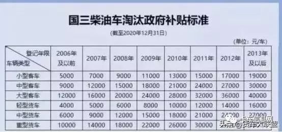 也能够看出从表格里,柴油车补助为00元满8年不脚9年的小型载客载货车品牌,饿则变成16000元而满9年不脚10年的,000元差了2。好好计较一下时间哦所以司机朋朋们可要。