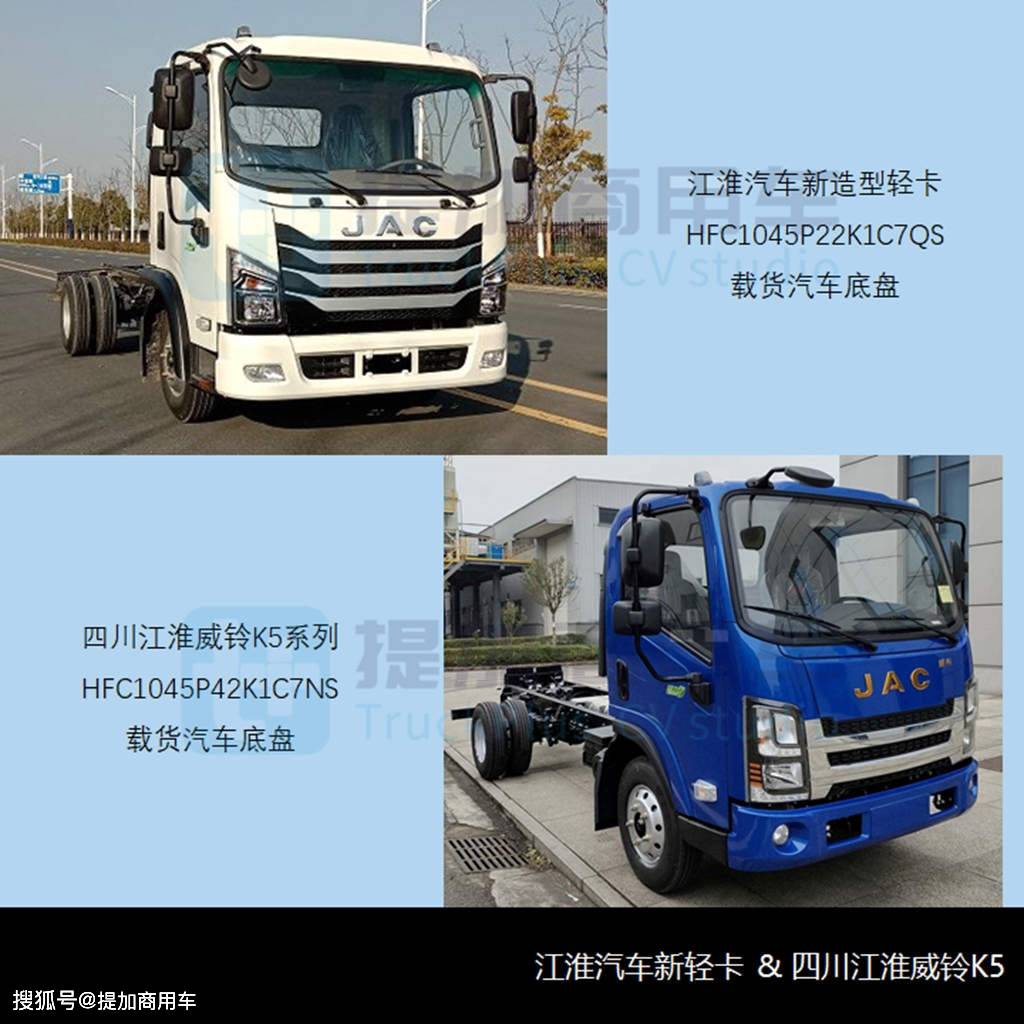 045P42K1C7NS载货汽车底盘四川江淮申报了威铃K5系列HFC1,业的从打产物那也是该企,帅铃Q系列从体风非分特别不雅沿用了本部的,进行了沉塑并对细节。045/2060mm该车宽2000/2,量量同上款轴距和零备,5+6板簧吊挂前4后4+2/,、马力柴油机搭载江淮2。2L,10km/h最高车速1。