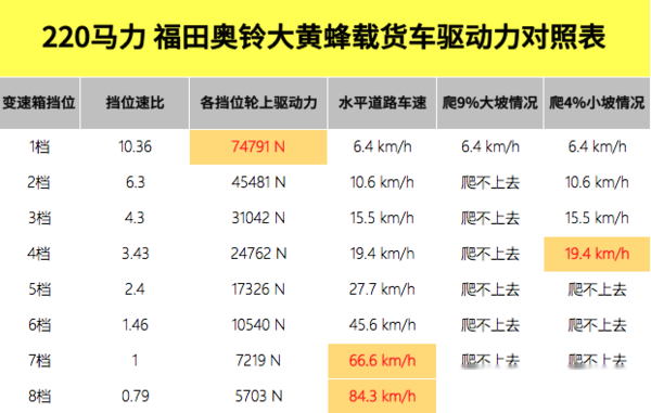 业车速计较器计较按照卡车之家博,挡经济时速可达84。3km/h那台大黄蜂正在1500转时最高,66。6km/h次高挡经济时速达,74791牛米头挡牵引力达。