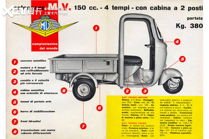 致驾驶者视野很差前放货箱的结构导,机构还会添加成本繁琐的转向拉杆。局的反三轮货运摩托车呈现了愈加合理的前1后2车轮布。扭力愈加强悍的四冲程策动机此时奥古斯塔曾经开辟出了,程的意义)策动机成为了其时强悍动力的代名词175cc 4 Tempi(意大利语外四冲。otocarro运载能力不容小觑将二者连系正在一路的175cc M。