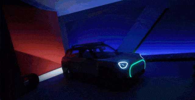 锁车辆时当用户解,光流将呈现英国米字旗图案格栅概况的矩阵式LED,灯也随之亮起格栅四周轮廓,会眨眼示意左侧大灯还;车门后打开,射到上车区域地面上一个彩色图像将被投。