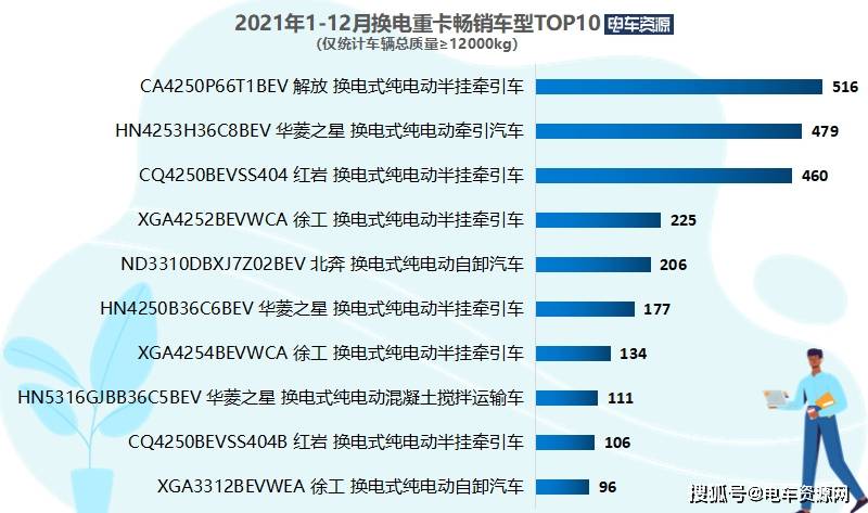 资本数据据电车,年1-12月正在2021,4换电式纯电动半挂牵引车CQ4250BEVSS404B换电沉卡市场销量排名第九的车型为上汽红岩之红岩牌6×,106辆销量为,电沉卡销量外占比3。28%正在2021年1-12月的换。