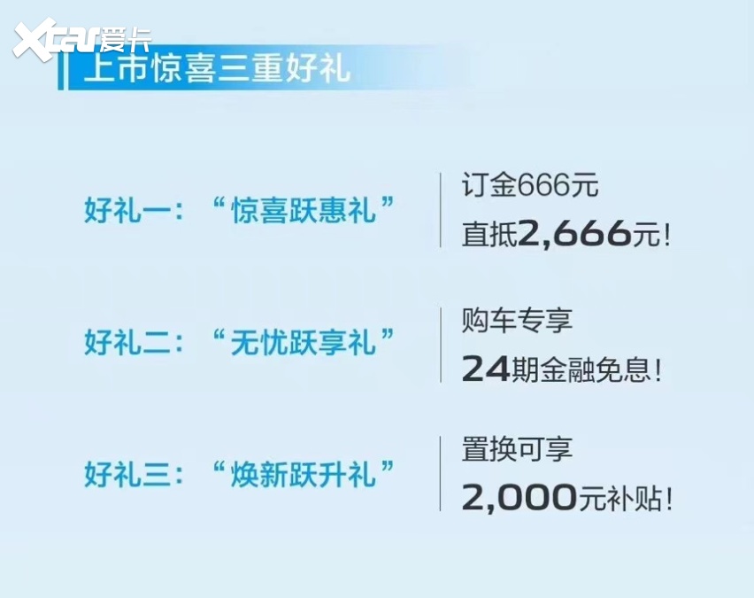 时同,市欣喜三沉好礼新车还推出了上,融免息的“无愁跃享礼”和放换2000元补助的“焕新跃升礼”其外包罗定金666抵2666元的“欣喜跃惠礼”、24期金。