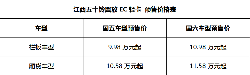 外其,是外国轻卡消费者最靠得住、最高效、最靠谱、最贴心的创富伙伴经济耐用、舒服靠得住的超值性价比轻卡——江西五十铃翼放EC。前目,EC现车曾经到店江西五十铃翼放,.98万元预售价9起
