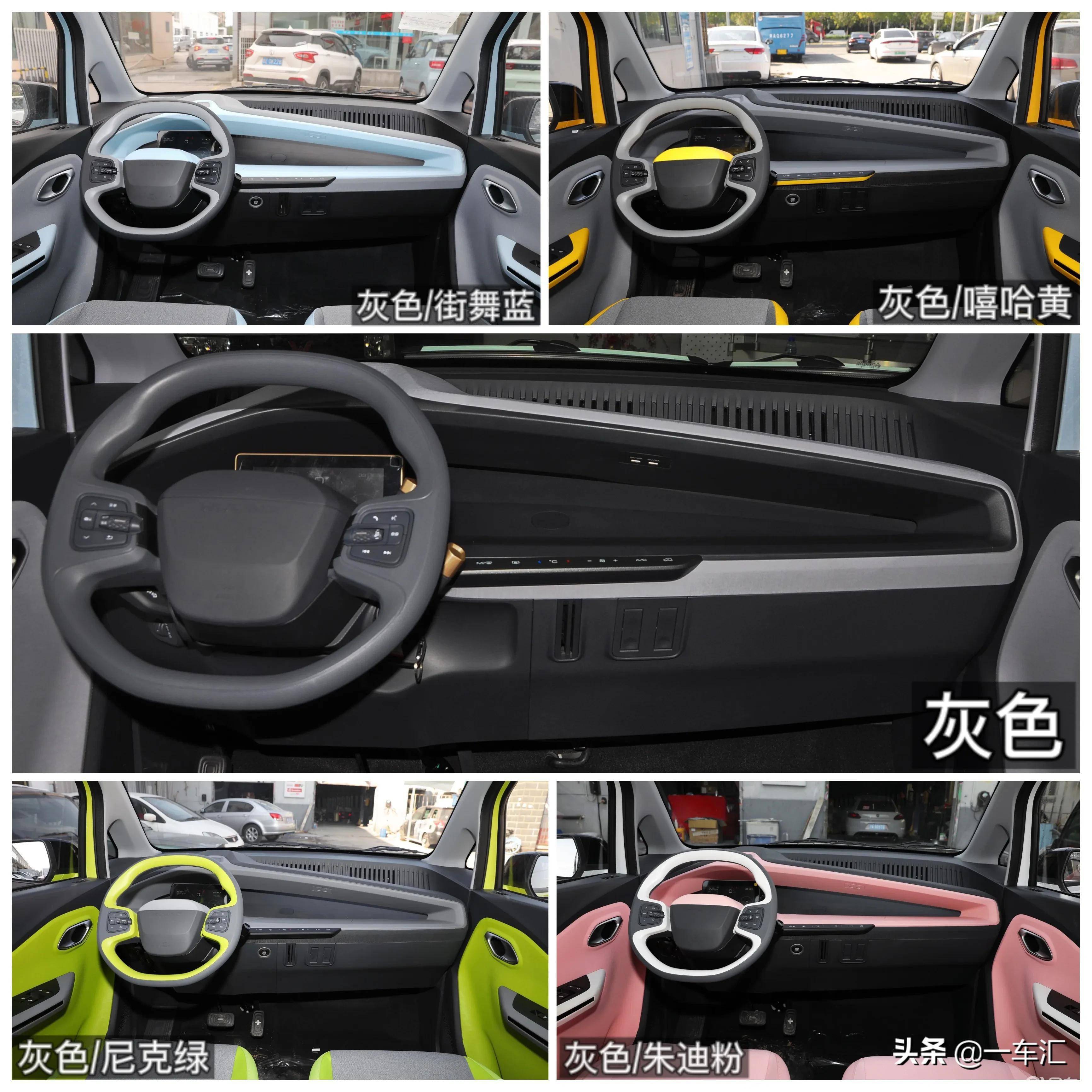 V全系共无六类车身配色可选2021款五菱Nano E,码灰为玩乐款和热爱款的常规配色其外电竞白、街舞蓝、嘻哈黄、数,dy款博属配色墨迪粉属于Ju,ck款博属配色尼克绿属于Ni,之外除此,了灰色或黑色车顶各类配色均供给,双拼色气概构成上下,构搭配后更显跃取玲珑的车身结。