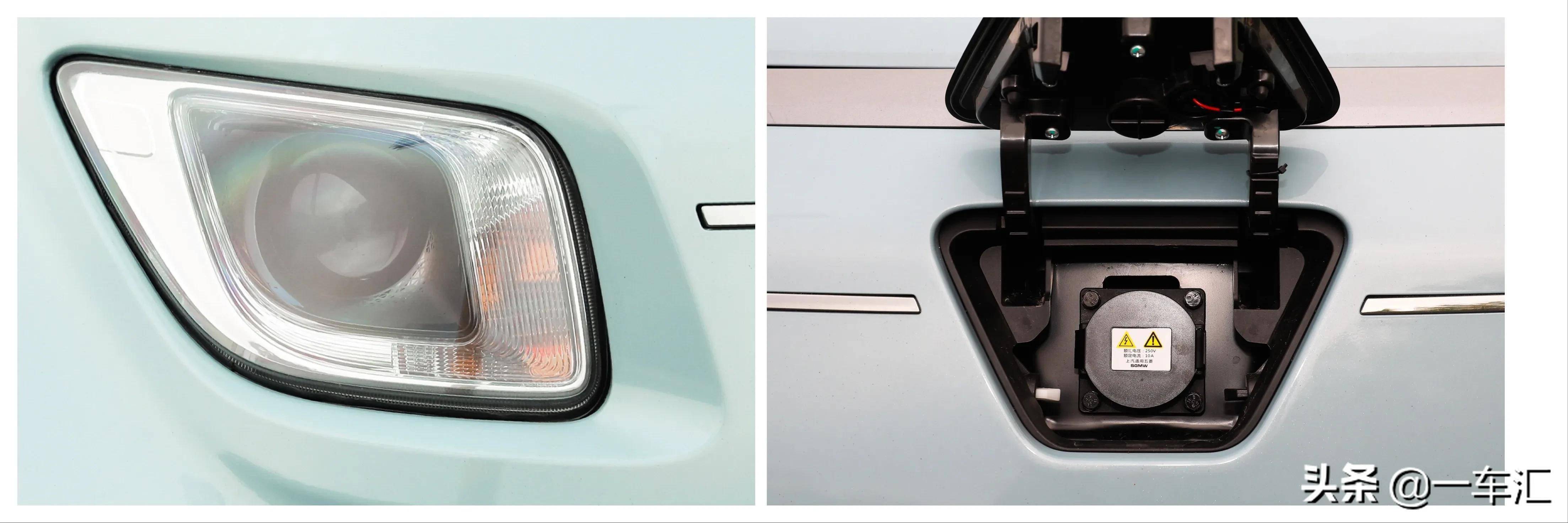 型玲珑大灯制,配还算比力协调取车头轮廓搭,光一体式灯组全系均为近近,流共同透镜布局采用通俗卤素光,至于太廉价看起来不,闭和大灯高度调理功能上标配延时关。正在车标盖板后方充电接口躲藏,车上常见做法属于目前电动,EV仅收撑慢充五菱Nano ,13。5小时慢充时间为。