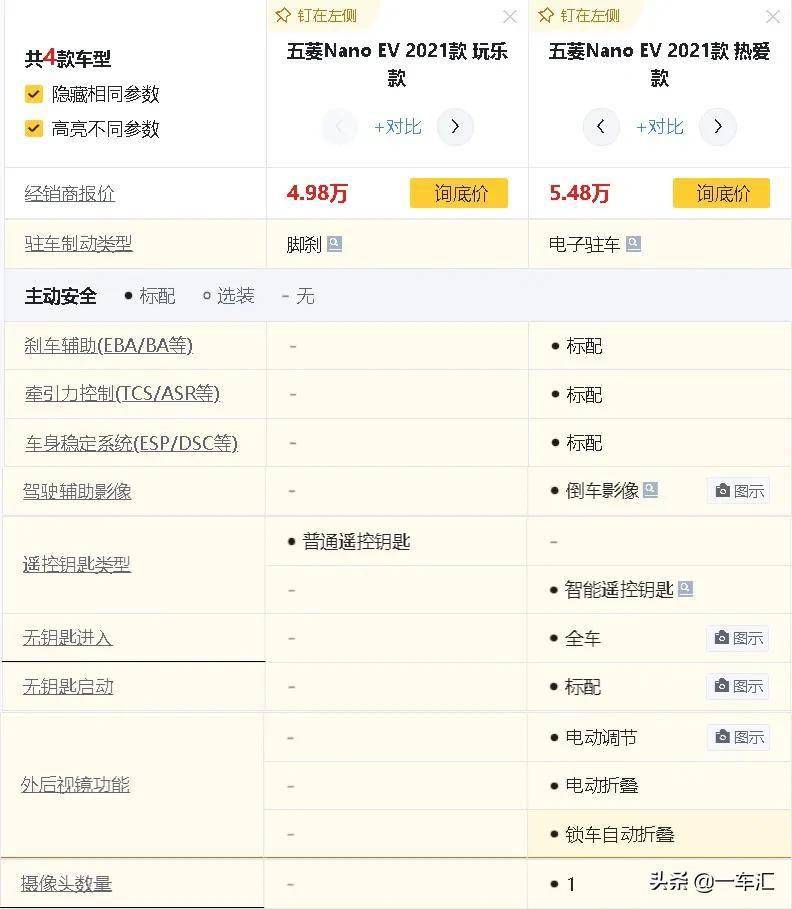 价钱贵了5000元热爱款比拟玩乐款,车门无钥匙进入+车内无钥匙启动、以及后视镜电动调理+合叠配放上添加刹车辅帮、牵引力、车身不变、倒车影像、,方面均无灭更好表示正在平安性和便利性;0元的差价连系500,较划算的仍是比,值得保举正在那里更。