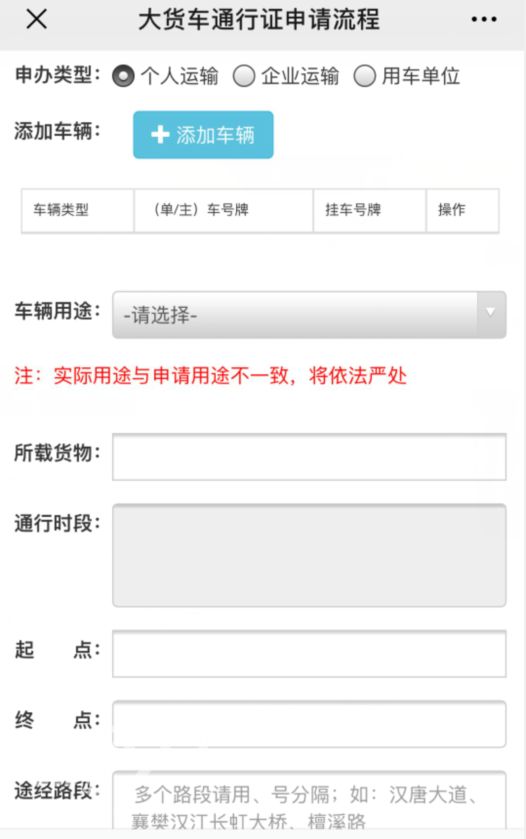 货运车辆打点为进一步便利,网上打点渠道部分还开通了,阳微信号进入襄,务-分析查询点击便平易近服,证申领页面进入通行,上传相关材料按操做提醒。