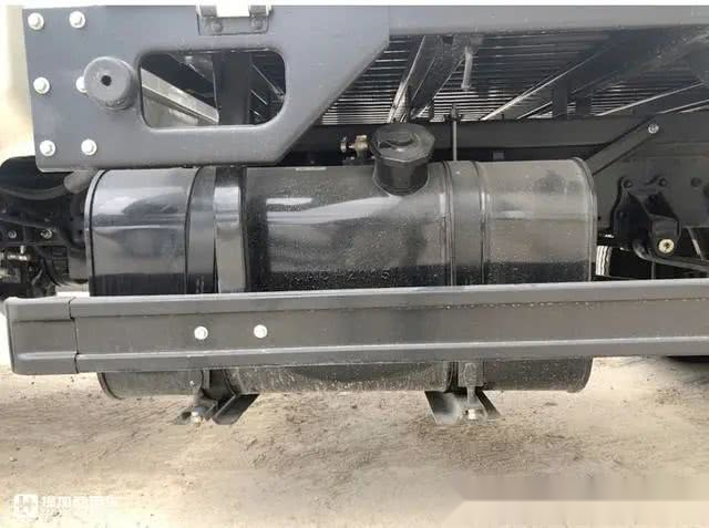放了一个黑色的铁量油箱康铃808正在车架左侧配,120L油箱容积。55L的微卡来说对一辆排量2。,可以或许满脚它的利用需求那类容量的油箱完全。