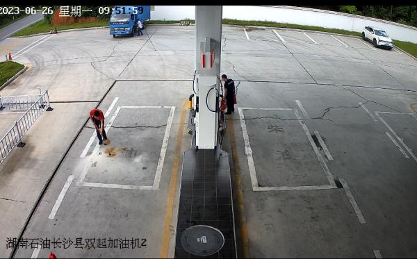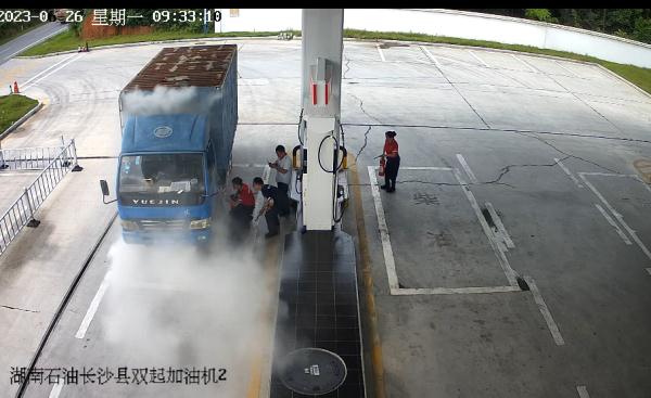 火情复燃为防行,协同司机当场察看吴刘慧武组织员工,火器进行防备现场摆放灭,分钟后约15,未再发生货车火情,将货车推离加油范畴加油坐员工协帮司机,车渗漏到地面的机油并利用消防沙处置货,后恢复了停业改换好灭火器。