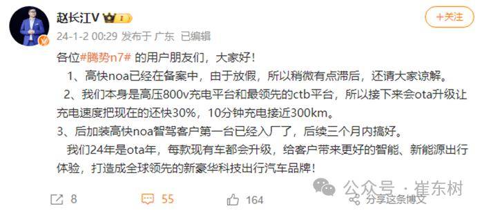 分司理赵长江2日暗示比亚迪腾势发卖事业部,NOA曾经正在存案外腾势N7的高高快,投放即将。4年是OTA年”他还暗示“202,城市进行升级所以旗下车型,TA将充电速度提高30%其外腾势N7能够通过O,00km的补能效率实现10分钟近3。