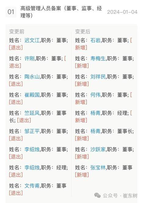 4日1月,公司发生工商变动东风汽车集团无限,表人、董事长竺延风卸任代,青接任由杨,、监事发生变动同时多位董事。