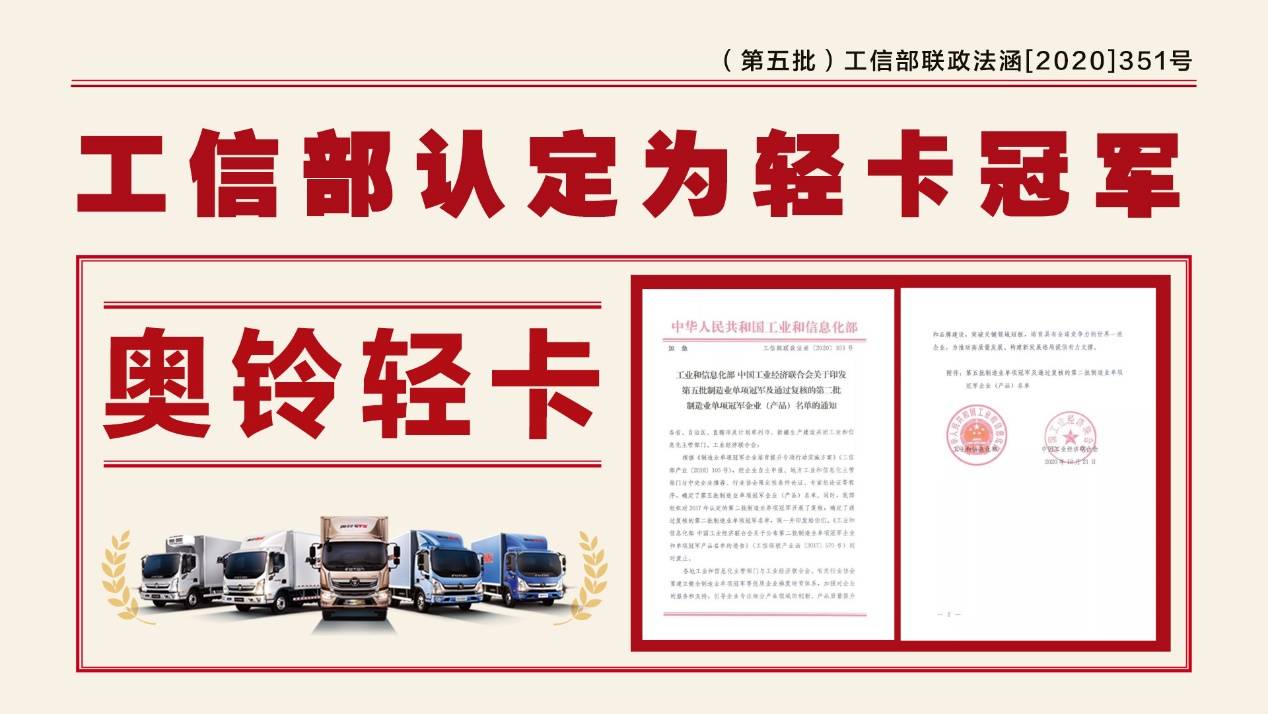 全新一代三冠王轻卡”奥铃Pro定位 “,量冠军以及单一品牌销量冠军三冠王指的是:制制冠军、品。气流自奥铃的汗青那类傲视群雄的底,部认定为制制业单项冠军奥铃轻卡曾被国度工信,位居轻卡行业第一同时持续两年销量。22年20,破100万辆奥铃产销突,赖之下百万信,王实至名归也让三冠。