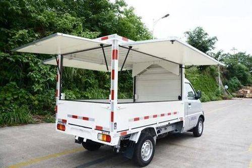 货箱四面都能够五菱翼售货车的,开并不需要手动搬运并且该车的货箱打,杆和气弹簧安拆车上配备了电推,按键就能从动打开商贩只需要按一下。无防夹手功能别的该系统还,十分平安用起来。贩而言对于商,示商品吸引顾客摆地摊靠的是展,大提高了商品的率翼四面可的功能大。