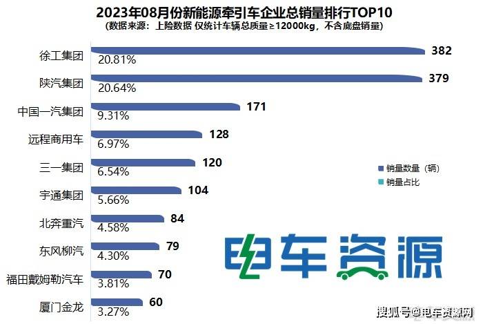 均跨越800辆前三企业销量,3684辆分销量为,车分销量43。17%占1-8月国内牵引,量较为集外头部企业销。